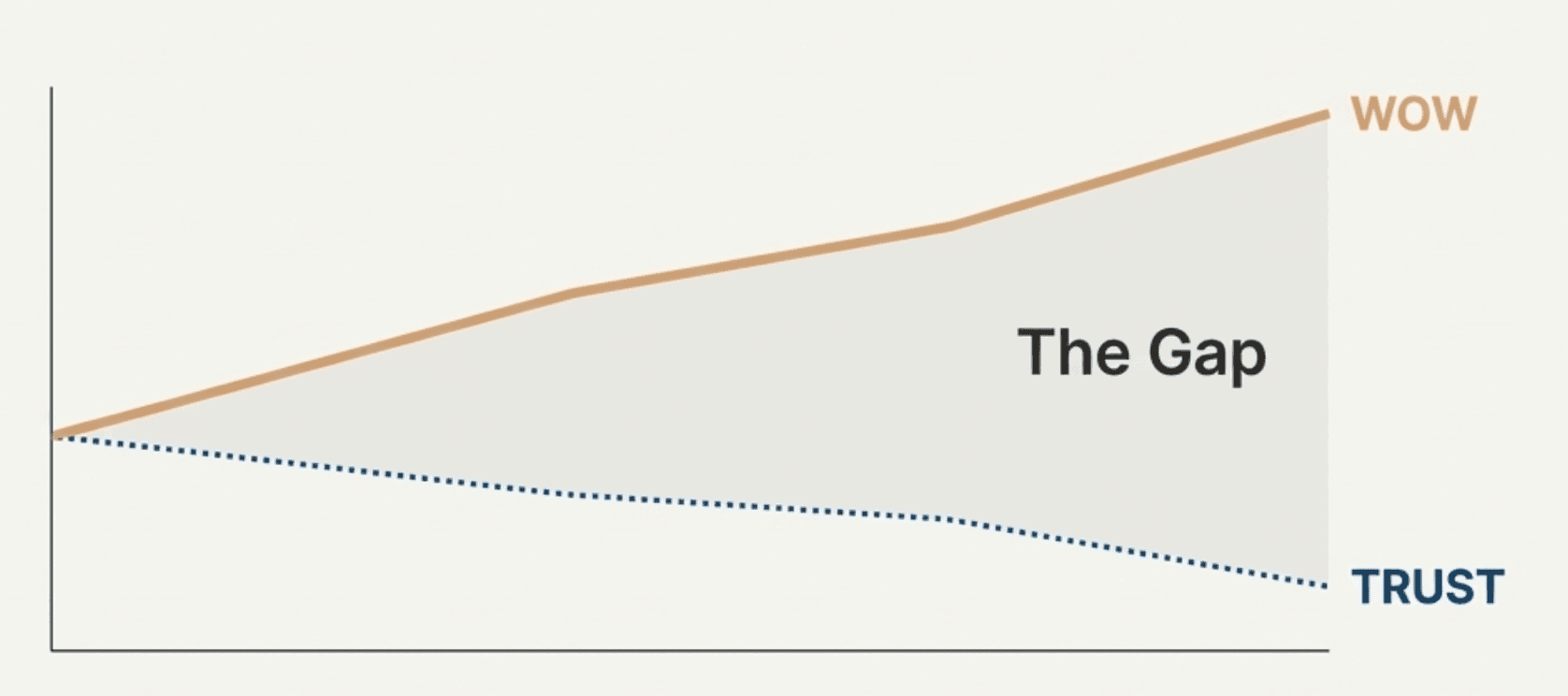 The growing divide between impressive-looking conversational experiences and reliable, trustworthy outcomes.