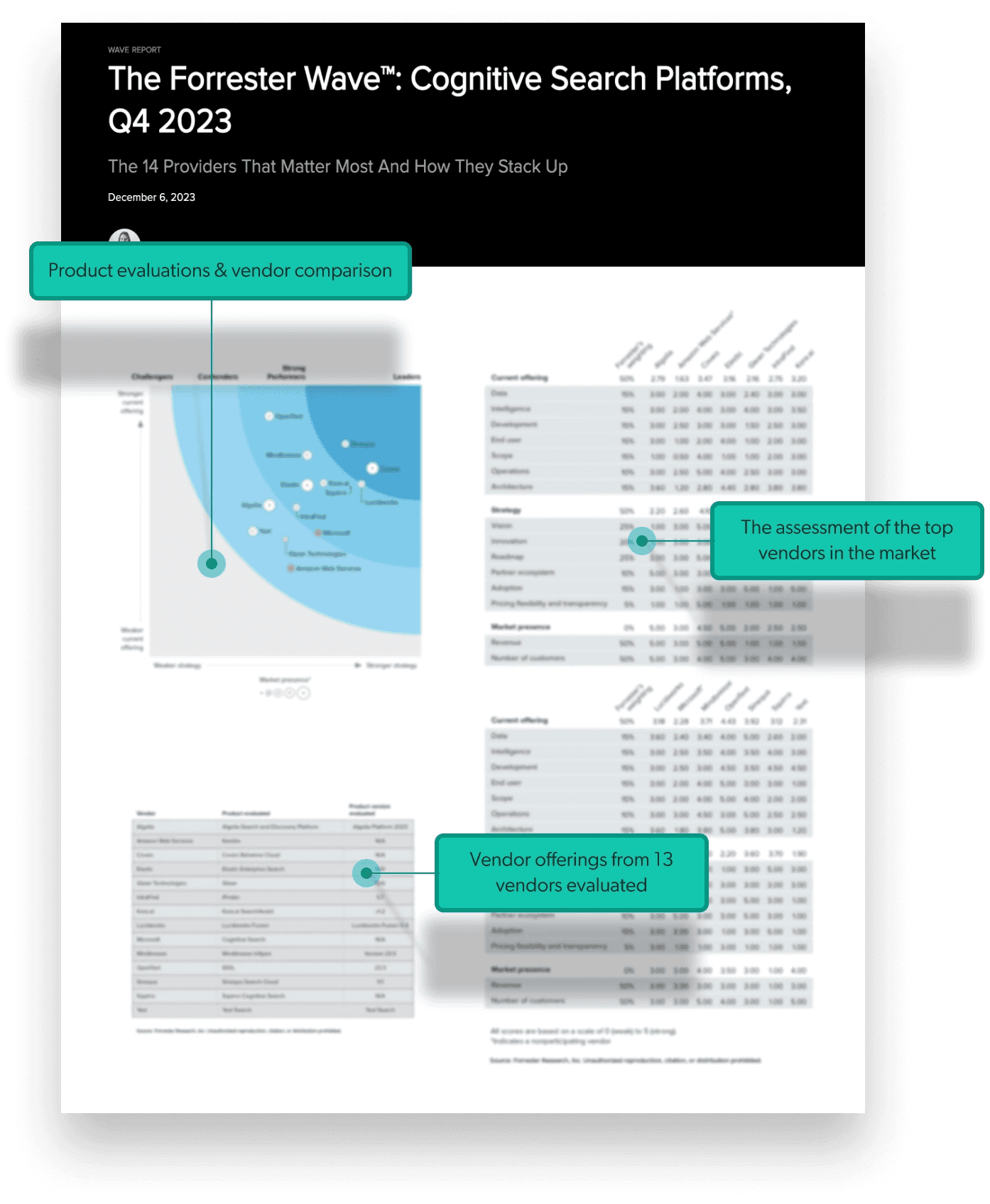 Evaluation criteria. Assess 14 top vendors, including Coveo in the Forrester Wave™, on 27 criteria spanning product capabilities to employee experience software solutions.
