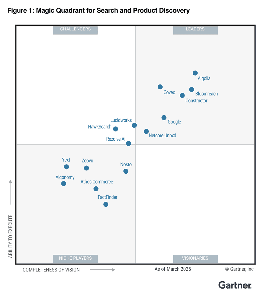 Gartner, Magic Quadrant for Search and Product Discovery, Mike Lowndes, Noam Dorros, et al., 24 June 2025